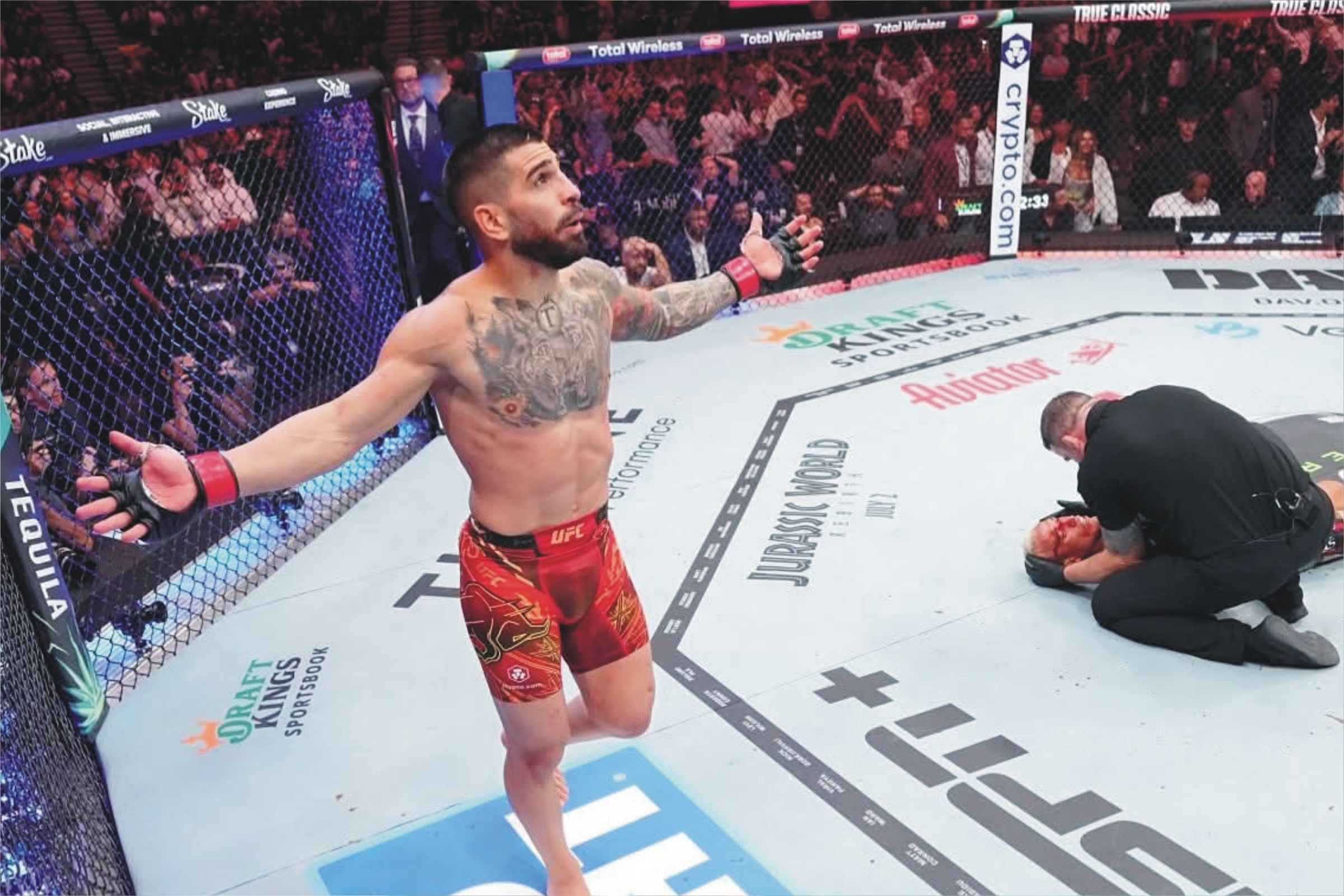 Y para rematar, ya en el peso Pluma, Topuria pasó como un ciclón ante el brasileño, Charles Oliveira, en el combate en el que el anterior campeón, Makhachev, dejó el cinturón vacante.